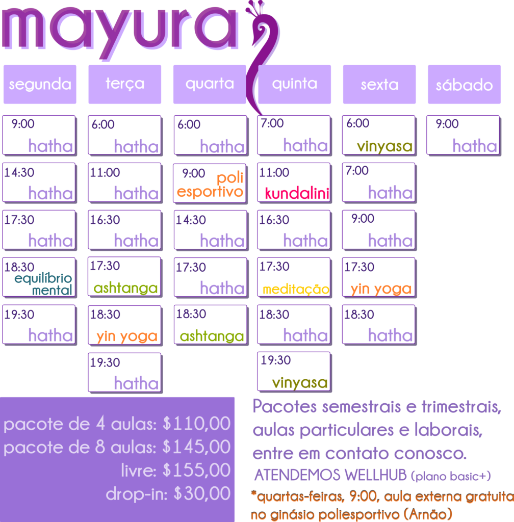 4) Temos tapetes a disposição, porém se possível adquira o seu, seja por higiene, por energia ou qualquer outro motivo. Se você quiser, pode adquirir conosco diretamente tapetes e outros produtos ARIMO com desconto. Se preferir, pode adquirir produtos YOGATERIA, utilizando nosso cupom MAYURA para desconto de 10% em todo site.